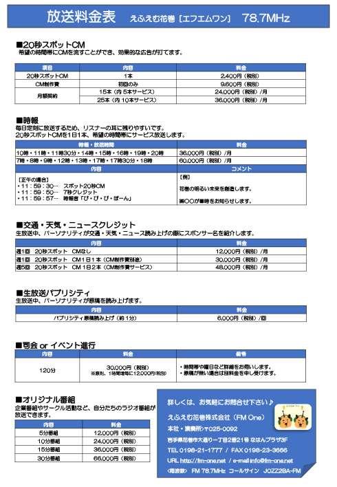 詳しい内容は、放送料金表PDFをダウンロードしてご確認ください。
